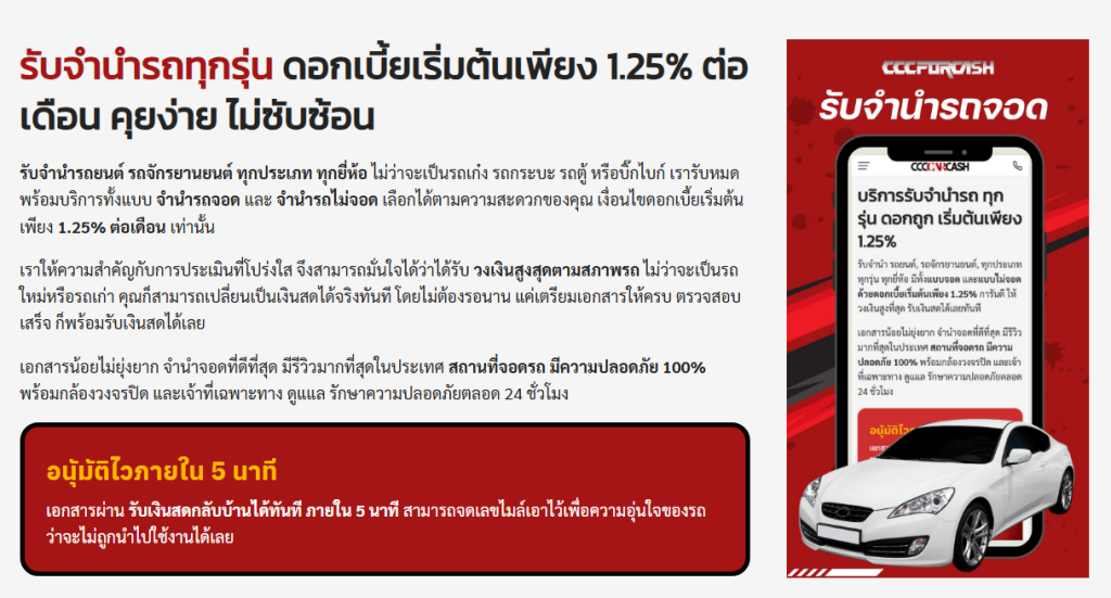 บางคนรีบใช้เงินแล้วไปทำกับที่รับจำนำที่ไม่มีชื่อเสียง ผลคือรถถูกยึดไปแล้วไม่สามารถเอากลับคืนมาได้ ในขณะที่บางคนเลือกบริษัทที่น่าเชื่อถือ มีสัญญาชัดเจน ก็สามารถหมุนเงินได้ทันเวลาโดยไม่ต้องเสียรถ ดังนั้น “การเลือกที่” สำคัญไม่แพ้เรื่องวงเงินที่เราต้องการเลย